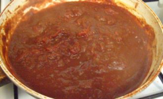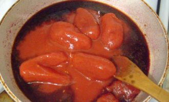 • Консервированные томаты, посолить, довести до кипения. Готовить 15 мин.