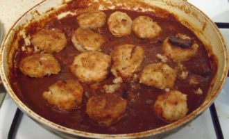 • Готовые тефтели выложить в соус и потушить 5 мин. Подавать горячими с зеленью.