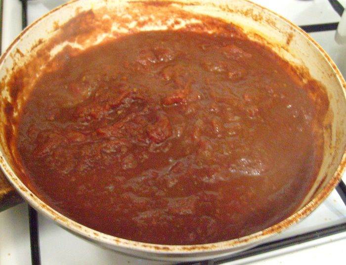 • Через 10 мин. можно начинать готовить соус. Обжарить на сковороде мелко нарезанную луковицу, добавить паприку.