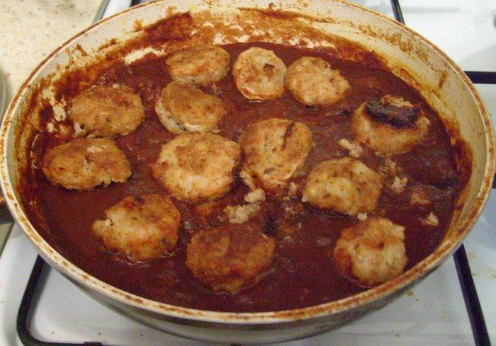 • Готовые тефтели выложить в соус и потушить 5 мин. Подавать горячими с зеленью.