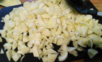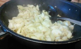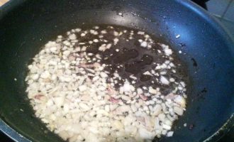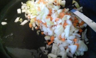 • Пассеруем мелко нарезанные овощи в небольшом количестве подсолнечного масла.