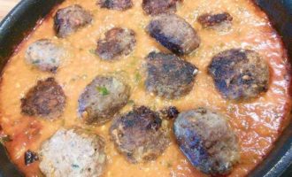 • Разогрейте духовку до 200°С. Соус необходимо посолить, поперчить, добавить сахар и по желанию острый соус чили. Выложить тефтели в соус.