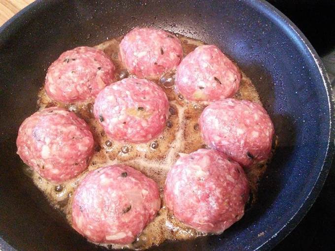• Сформировать тефтельки и обжарить их на масле до румяной корочки.
