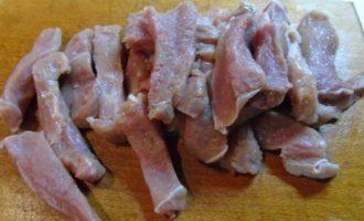Мясо вымойте и обсушите бумажным полотенцем, нарежьте поперек волокон.