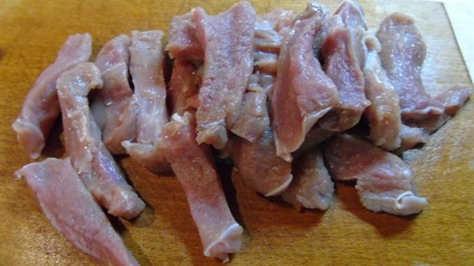 Мясо вымойте и обсушите бумажным полотенцем, нарежьте поперек волокон.