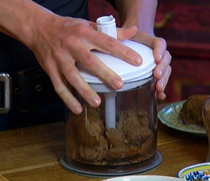 Булочку поломать и измельчить в блендере в мелкую крошку.