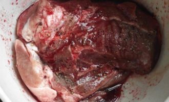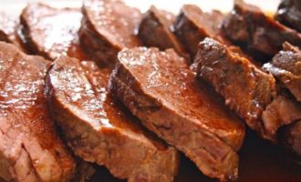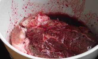 Спустя пройденное время телятину перевернуть и отправить на 1 час в холодильник. Мясо впитает в себя нужное количество маринада. Через 30 минут мясо снова перевернуть.