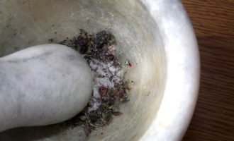 Все сухие специи растолочь в ступке.