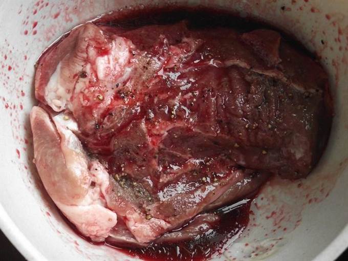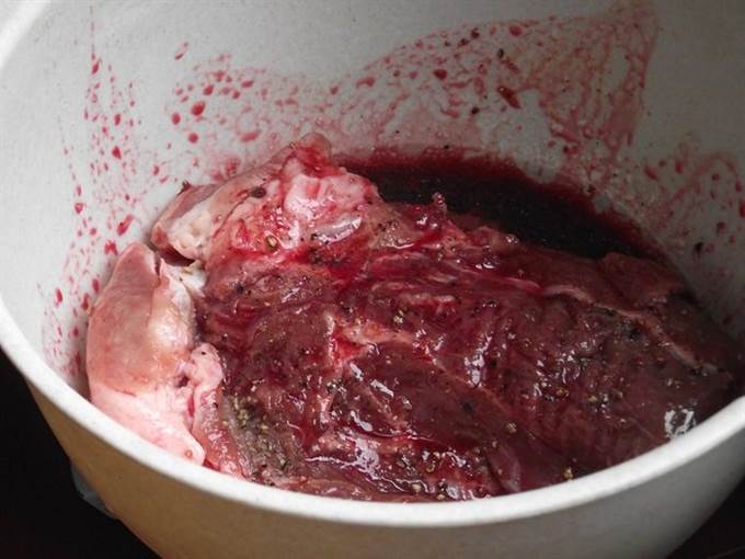 Спустя пройденное время телятину перевернуть и отправить на 1 час в холодильник. Мясо впитает в себя нужное количество маринада. Через 30 минут мясо снова перевернуть.