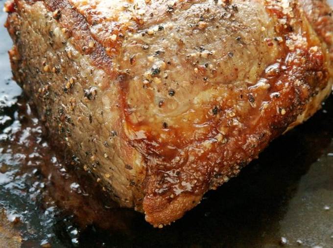 Телятину просушить бумажной салфеткой и натереть подготовленной смесью специй и соли.