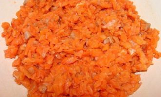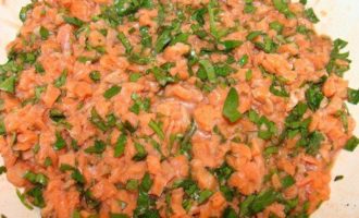 Семгу отделить от костей, мелко нарубить! Именно нарубить ножом, чтобы сохранились кусочки.
