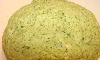 Тесто у нас абсолютно постное. Муку просеять, высыпать горкой, посолить. Сделать углубление, вылить размороженную шпинатную смесь (400 г). Добавить 50мл оливкового масла. Замесить мягкое тесто. По мере надобности муки можно чуть чуть добавить.