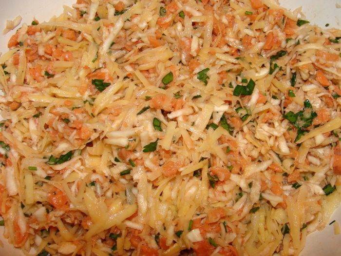 Очистить и потереть на крупной терке корень сельдерея, добавить к рыбе.