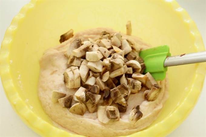Мелко рубим свежие шампиньоны. Добавляем их к фаршу.