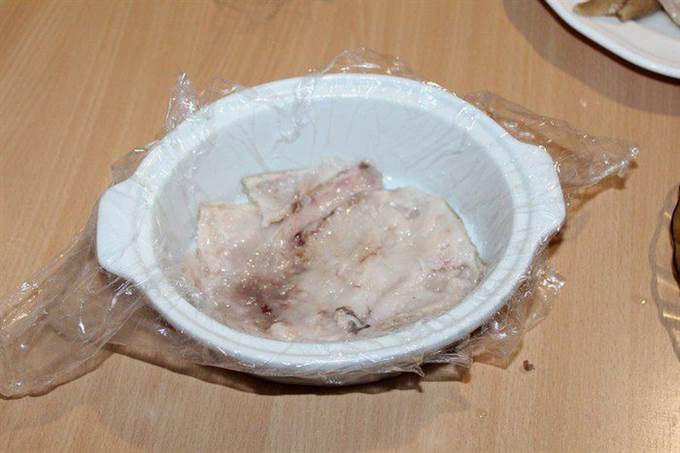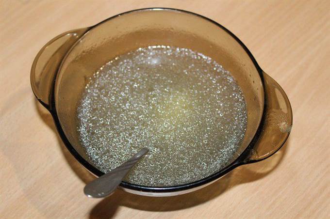 Бульон, в котором варилась рулька, процедить, поперчить, посолить. Добавить желатин (согласно инструкции). На 400 г бульона и 1 ч.л. желатина.