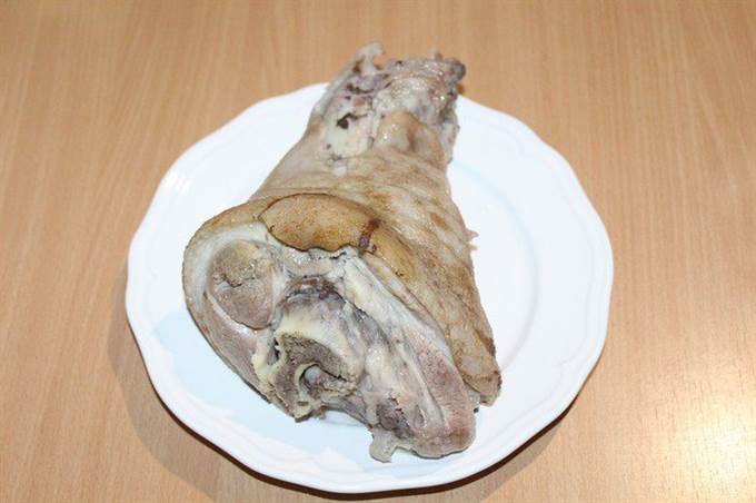 Залить водой. Когда вода закипит 10-15 минут, слить воду, залить еще раз. Отварить до готовности 2,5 — 3 часа. Добавить в бульон перец горошком, душистый перец, лавровый лист, лук, чеснок, морковь. Во время варки рулька должна быть полностью погружена в воду. -