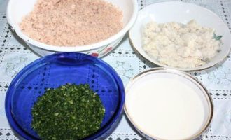 Филе горбуши отварить с лавровым листом, луком, солью, перцем горошком до полной готовности. Филе хека отварить с лавровым листом, солью и перцем. Рыбу варим в разных кастрюлях. Дать остыть. Желатин замочить в остывшем бульоне бульоне (250 мл). Готовый желатин смешать с майонезом, добавить лимонный сок. Горбушу и хек взбить в блендере (отдельно), добавить соль и перец по вкусу. Петрушку мелко нарезать.