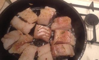 Треску обжарить на масле слегка, до легкого золотистого цвета.