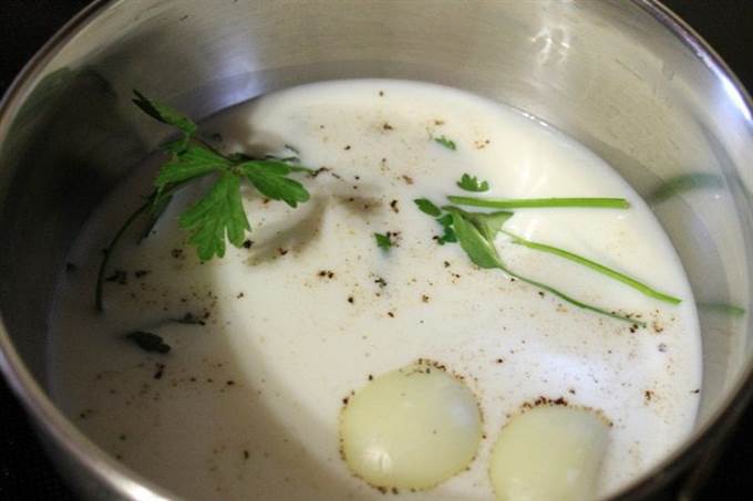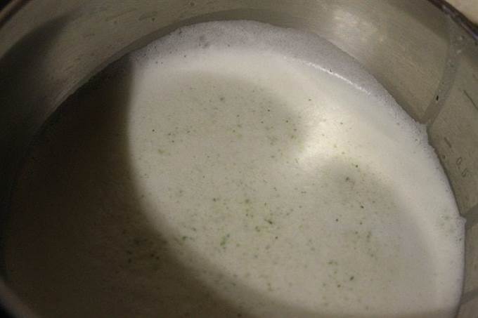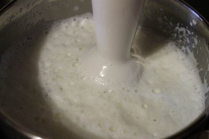 • Через полчаса пробиваем блендером молоко с луком и петрушкой.