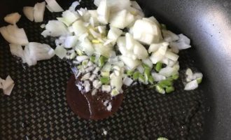 • Разогрейте немного оливкового масла в глубокой сковороде и жарьте на нем лук, чеснок, добавьте копченую паприку и перец чили, примерно 3-4 минуты.