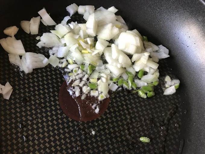 • Разогрейте немного оливкового масла в глубокой сковороде и жарьте на нем лук, чеснок, добавьте копченую паприку и перец чили, примерно 3-4 минуты.