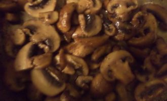 • Грибы порезать. В другой сковороде разогреть 3 ст. л. растительного масла, выложить грибы, посолить, поперчить и обжарить.