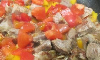 Теперь кладем нарезанные помидоры, добавляем 0,5 стакана воды, соль, перец, карри и готовим еще 20 минут.