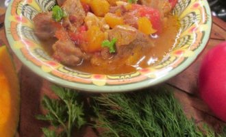 Тыква в пряных овощах готова. Посыпаем зеленью по вкусу и подаем с любым гарниром.