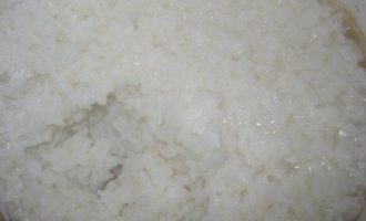 Варим рис до полуготовности, солим по вкусу, сливаем воду. Или можно взять тот, который у вас остался после предыдущей трапезы.