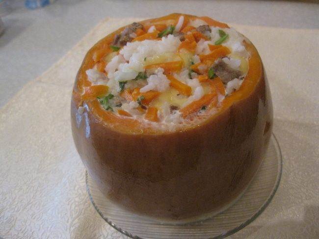 Говядину, рис, тыкву, лук зеленый и сыр перемешиваем.
