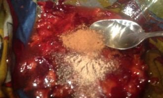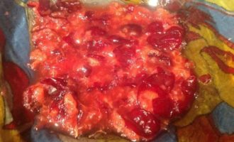 У вишни удалите косточки. Третью часть вишни разомните вилкой, остальную отложите.