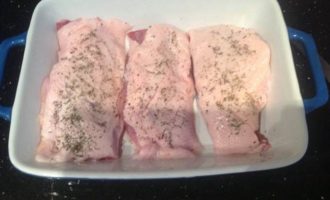 Утиные грудки вымойте, обсушите бумажным полотенцем, аккуратно сделайте надрезы на коже, натрите солью, перцем и тимьяном. Выложите в форму и поставьте в разогретую до 180 градусов духовку на 20 минут.