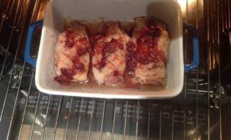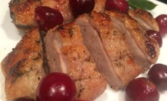 Полейте получившимся соусом утиные грудки и готовьте еще 15 минут. Через 15 минут полейте грудки выделившимся соком и готовьте пока не подрумянятся, это еще примерно 10 минут.