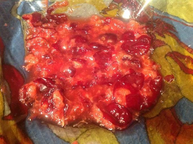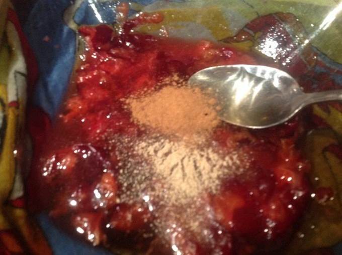 У вишни удалите косточки. Третью часть вишни разомните вилкой, остальную отложите.