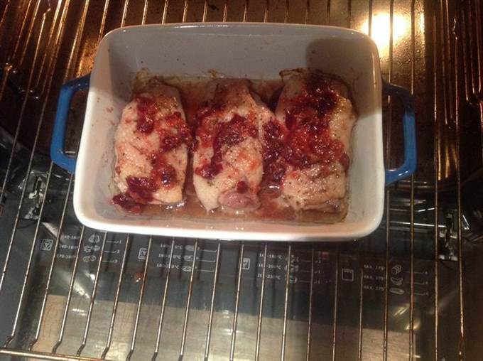 Полейте получившимся соусом утиные грудки и готовьте еще 15 минут. Через 15 минут полейте грудки выделившимся соком и готовьте пока не подрумянятся, это еще примерно 10 минут.
