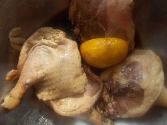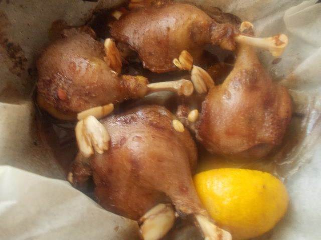 Утиные ножки, маринованные в соевом соусе с чесноком и лимоном