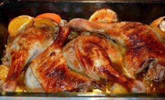 Выпекать в хорошо разогретой духовке при 200°С 45 — 55 минут. Готовое блюдо вынуть из духовки и прикрыть фольгой на 5 — 7 минут. Подавать с отварным стручковым зеленым горошком или овощами на пару.