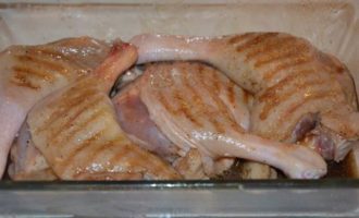 Выложить ножки в блюдо для запекания, полить маринадом.