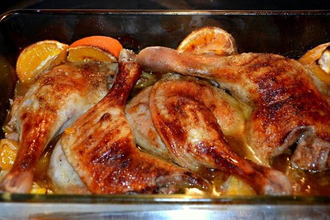 Выпекать в хорошо разогретой духовке при 200°С 45 — 55 минут. Готовое блюдо вынуть из духовки и прикрыть фольгой на 5 — 7 минут. Подавать с отварным стручковым зеленым горошком или овощами на пару.