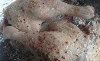 • Противень застелите фольгой, смажьте маслом, выложите ножки, посолите и поперчите.