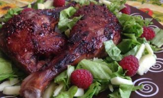 • Оставьте 2 ч.л. глазури, остальной полейте утиные ножки. Выпекайте в духовке 20 минут.