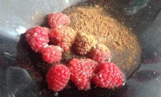 • Духовку разогрейте до 200 градусов. Приготовьте глазурь: смешайте все ингредиенты, разминая малину вилкой.
