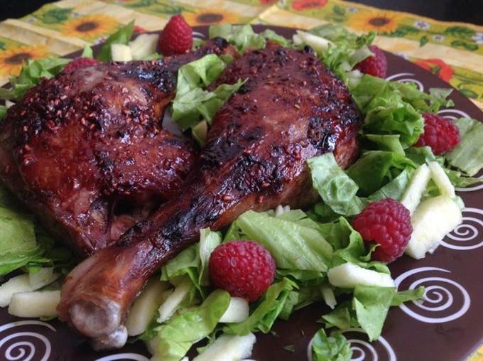 • Оставьте 2 ч.л. глазури, остальной полейте утиные ножки. Выпекайте в духовке 20 минут.
