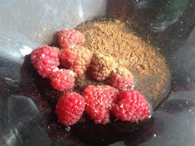 • Духовку разогрейте до 200 градусов. Приготовьте глазурь: смешайте все ингредиенты, разминая малину вилкой.