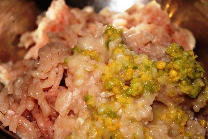 Добавить яйцо, соль, масло. Все тщательно перемешать. Фарш готов