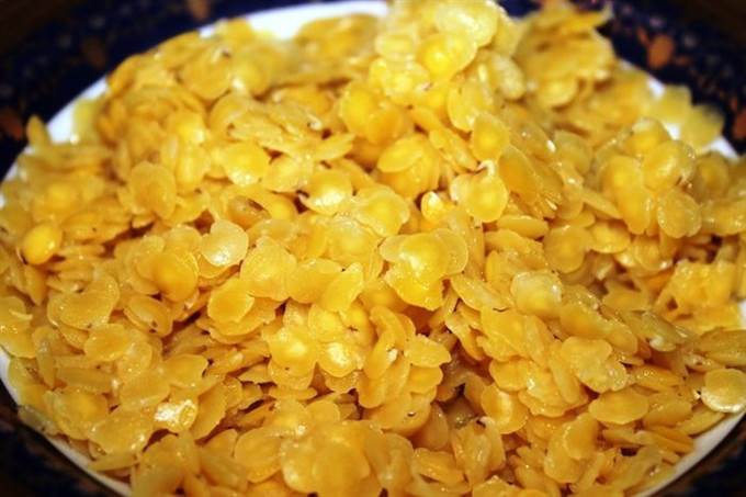 Необходимо предварительно отварить до полуготовности чечевицу. Для контрастного цвета лучше всего взять желтую или красную чечевицу. Отварить ее в подсоленной воде минут 10, затем откинуть на дуршлаг, промыть холодной водой и дать подсохнуть.