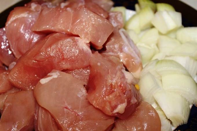 Соединить фарш с чечевицей и зеленым горошком. Зеленый горох предварительно следует обдать кипятком и откинуть на дуршлаг