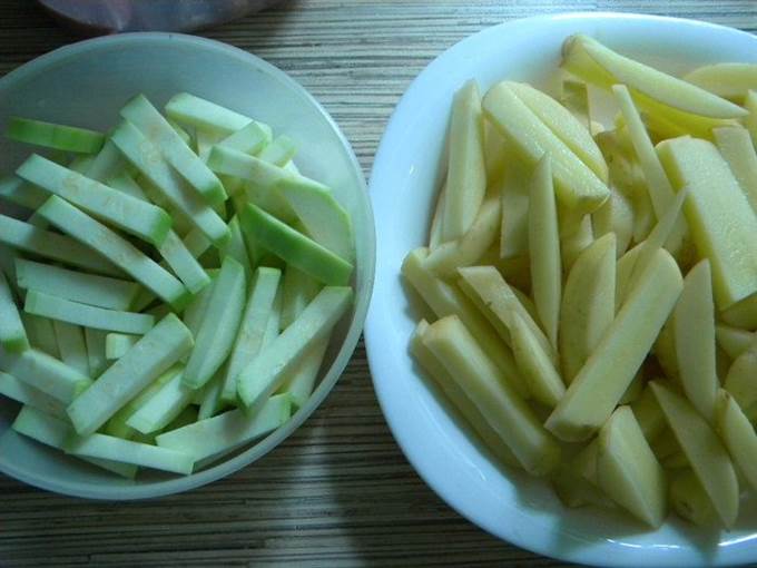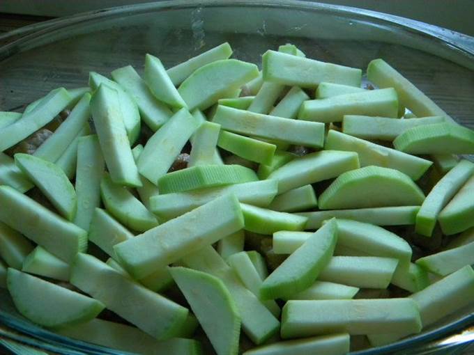 • Поджариваем морковь и лук и вылажеваем сверху кабачка, потом заливаем сметаной.