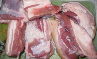 Свежее сало моем и режем его на небольшие куски. Хорошенько натираем солью, специями.