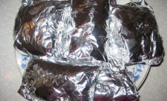Заворачиваем в фольгу и убираем на ночь в холодильник.
